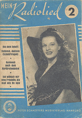 andere Aufmachung als die später erschienenen Nachfolgehefte aus dem VEB Lied der Zeit Musikverlag. Es ist dreigegliedert in Film-und Operetten-Erfolge; Tänze, Lieder, Chansons und Karnevals-Schlager